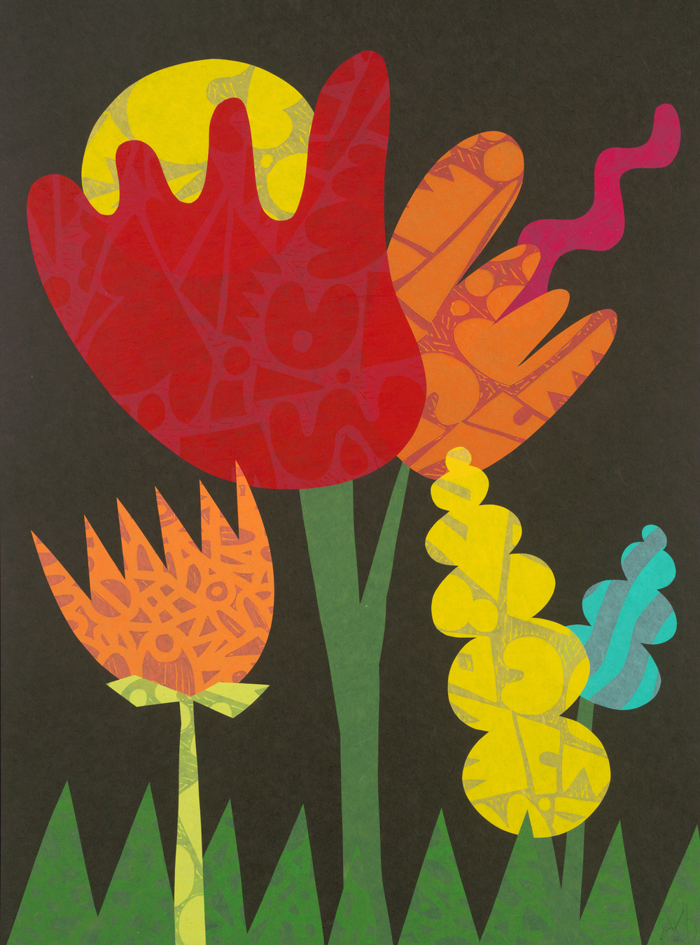 Collage with Linoblock Elements on Cotton Rag Paper