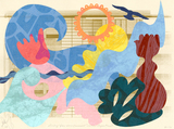 This collage is one of many studies I did for an art proposal for the San Francisco Water Department. The piece is about reimagining our relationship to water by examining the past, present and future. Through abstract symbolism, vibrant hues, and my distinctive collage approach, I sought to chronicle the intertwined tales of three forces that have deeply shaped San Francisco's water system.