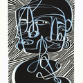 This serigraph was created with cut rubylith film, which gives it the feeling of both sharp and soft edges. The piece is a self portrait, reflecting my dual role as an artist and social justice activist.