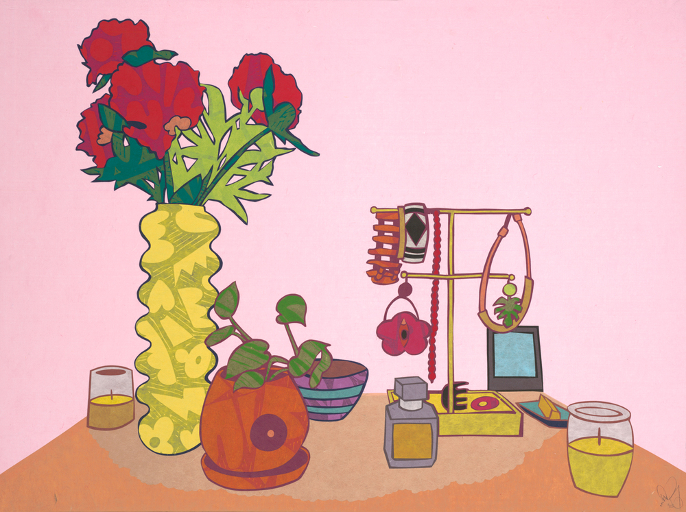 Collage with Linoblock and Screenprint Elements on Cotton Rag Paper